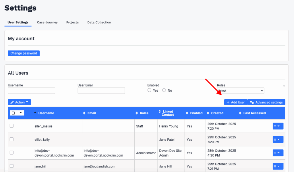 You’ll need to have an Admin role to create a new user. You can find out more about the two user roles in Nook in this article.